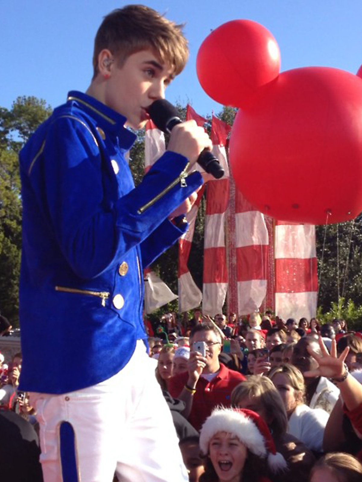 Justin Bieber at the Disney Parks Christmas Day Parade Filming